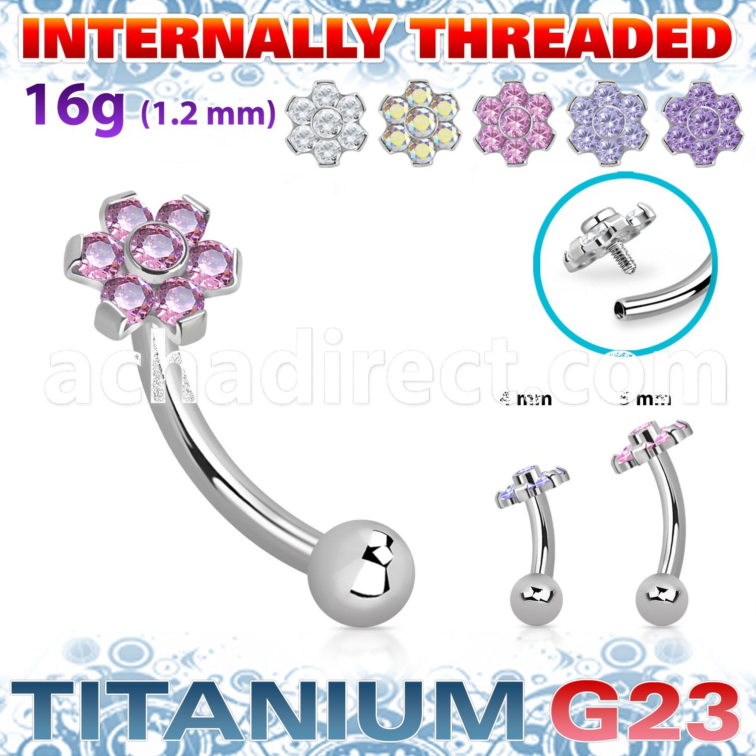 Titanium Banana in Flower Design Top with CZ Stones & a Ball