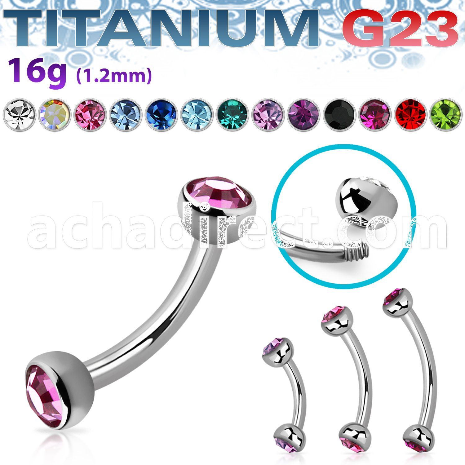 2. ubne2c titanium g23 eyebrow banana with 3mm bezel jewel balls