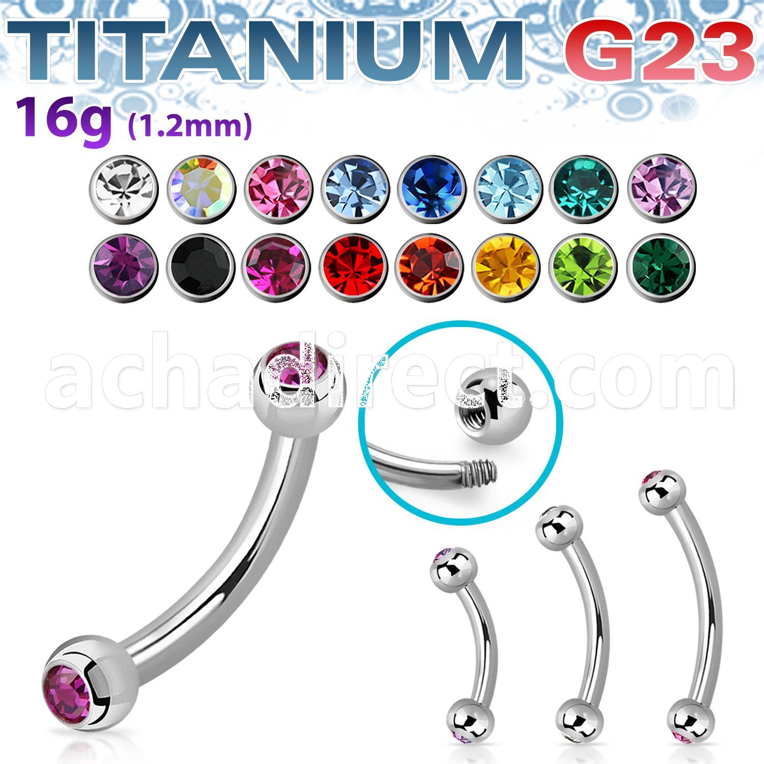8. ubne2c titanium g23 eyebrow banana with 3mm bezel jewel balls