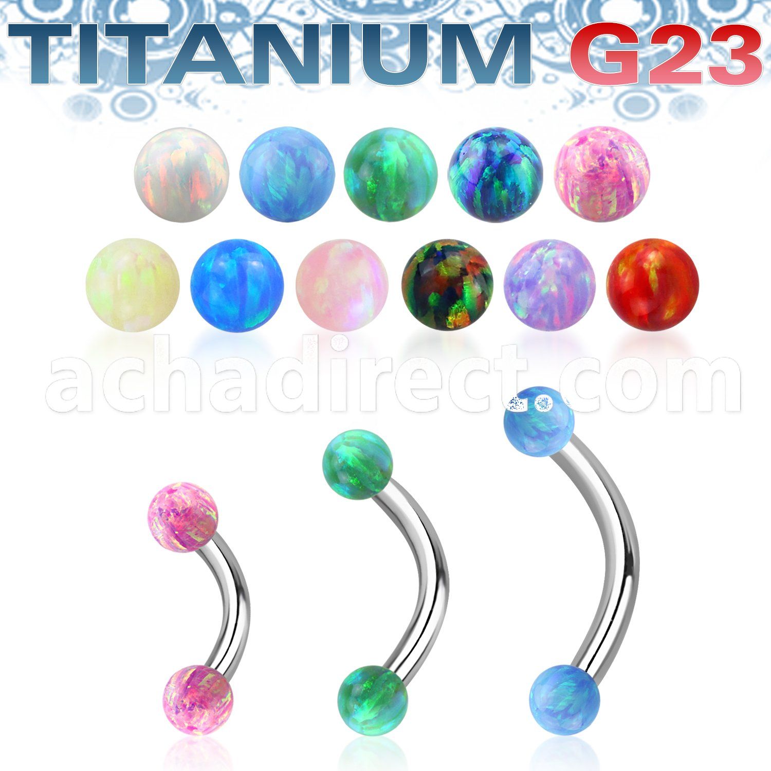 High Polished Titanium Banana with Two Synthetic Opal Balls