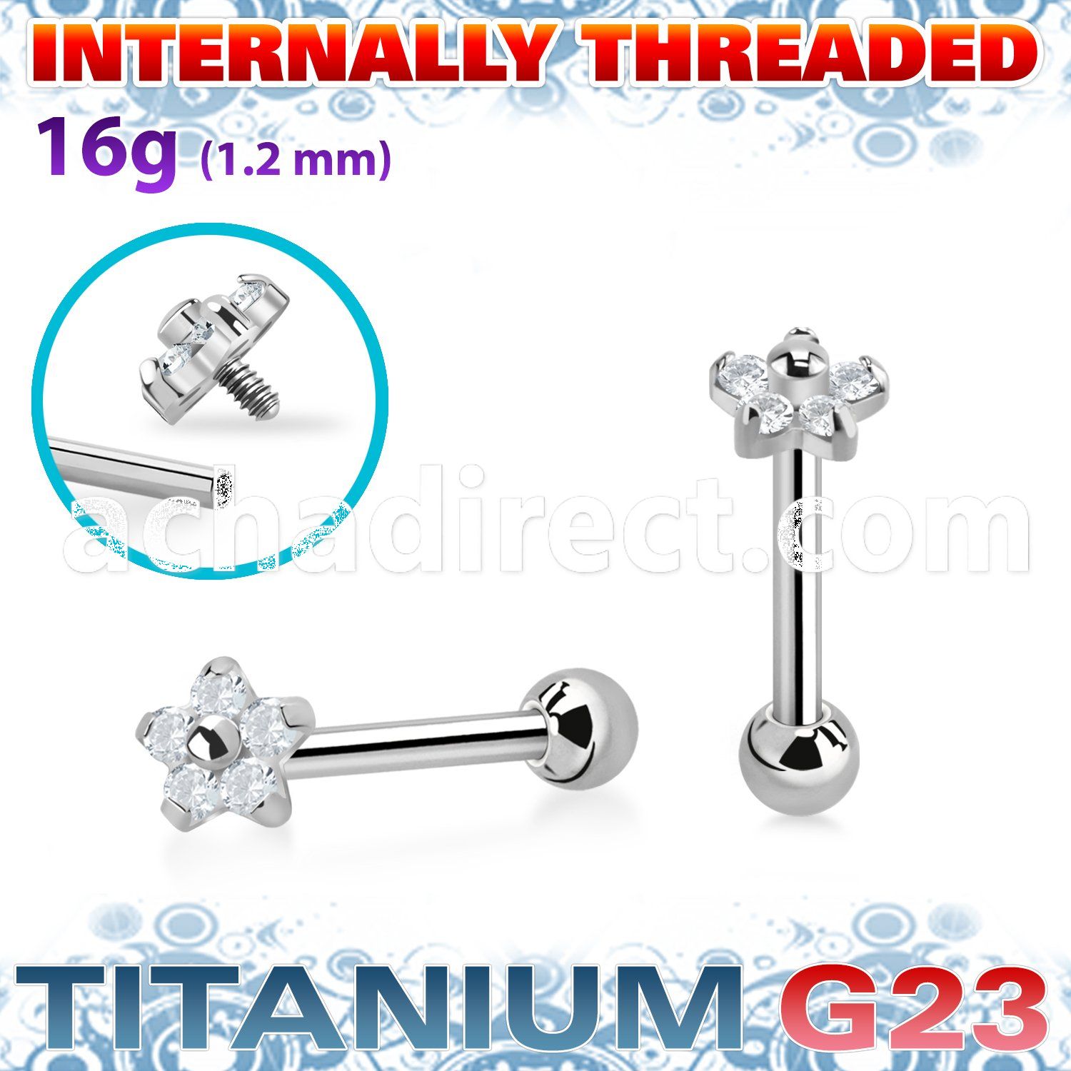 Titanium Barbell with Flower Shape Top Prong Set CZ Stones