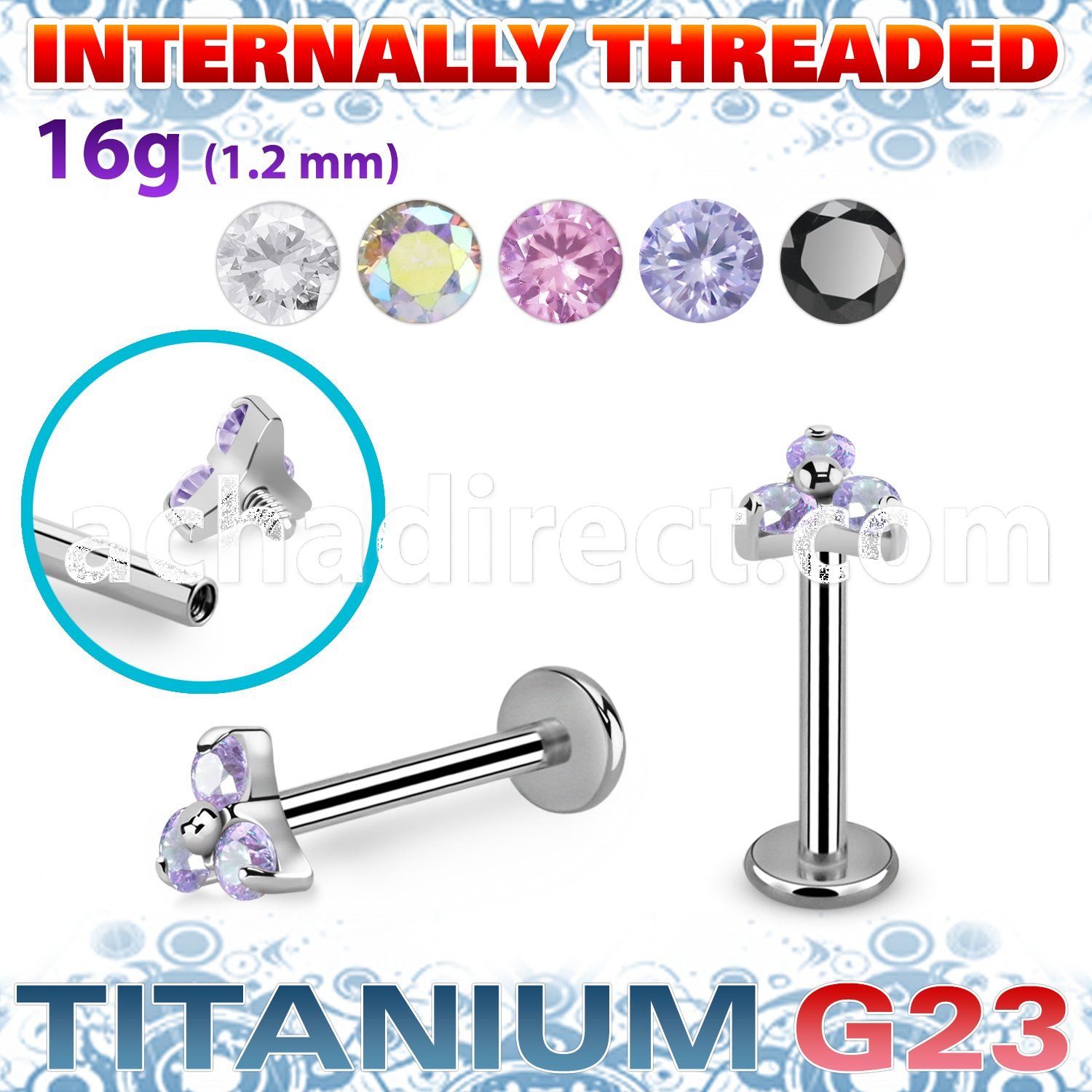 2. ulbin7 titanium g23 internally threaded labret round cz
