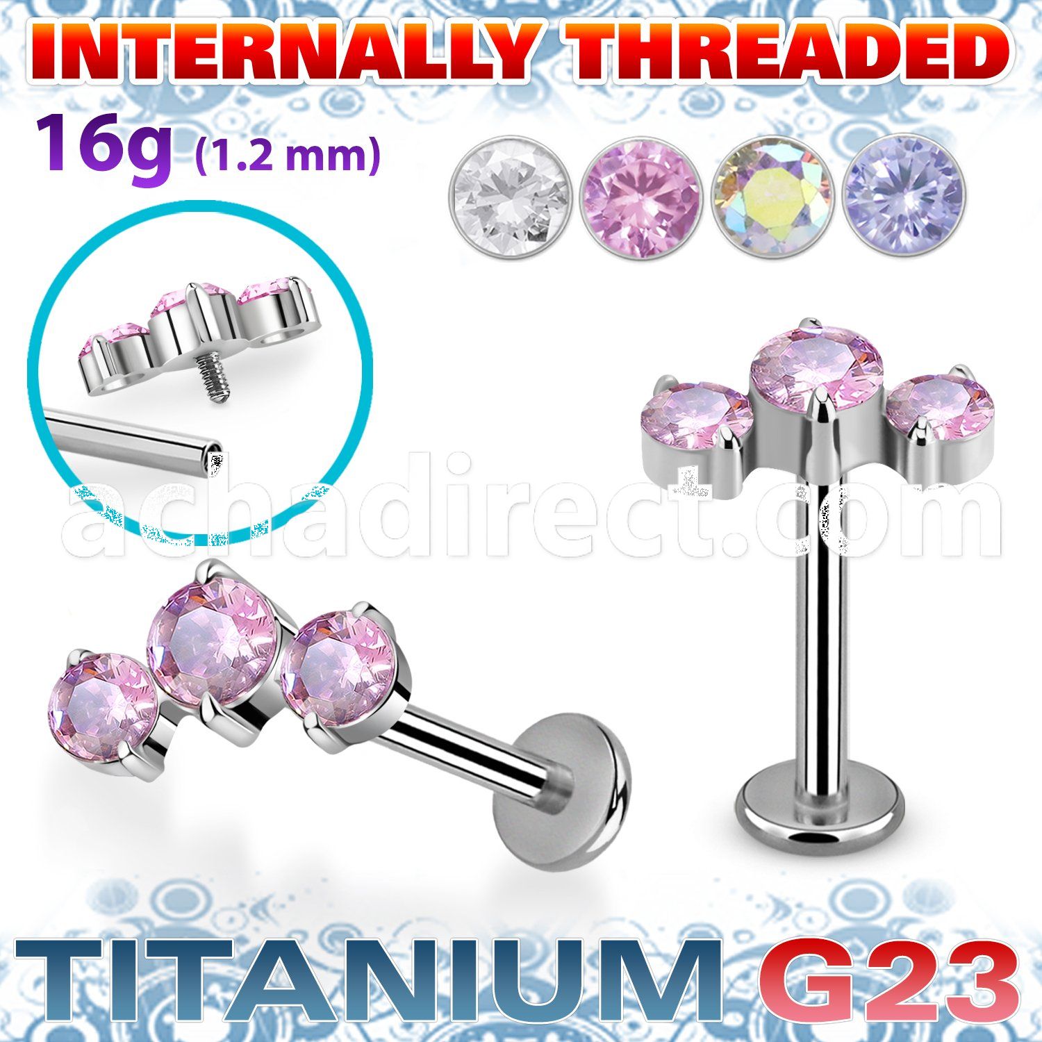 1. ulbin9 titanium g23 internally threaded labret 3 cz