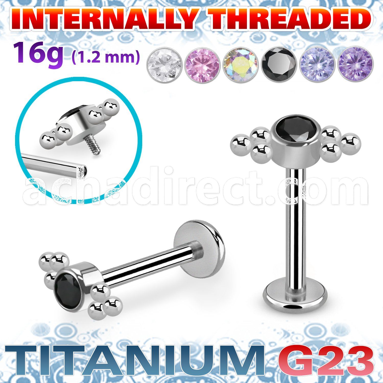 Titanium Internally Threaded Labret, Balls Custer & CZ Stone