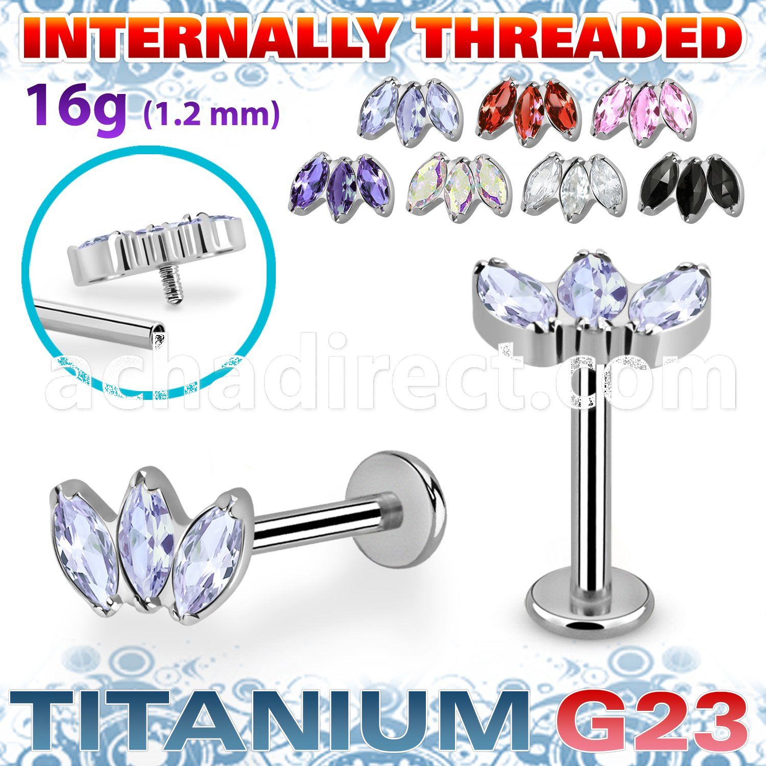 6. ulbin12 titanium g23 internally threaded labret 3 5 color cz