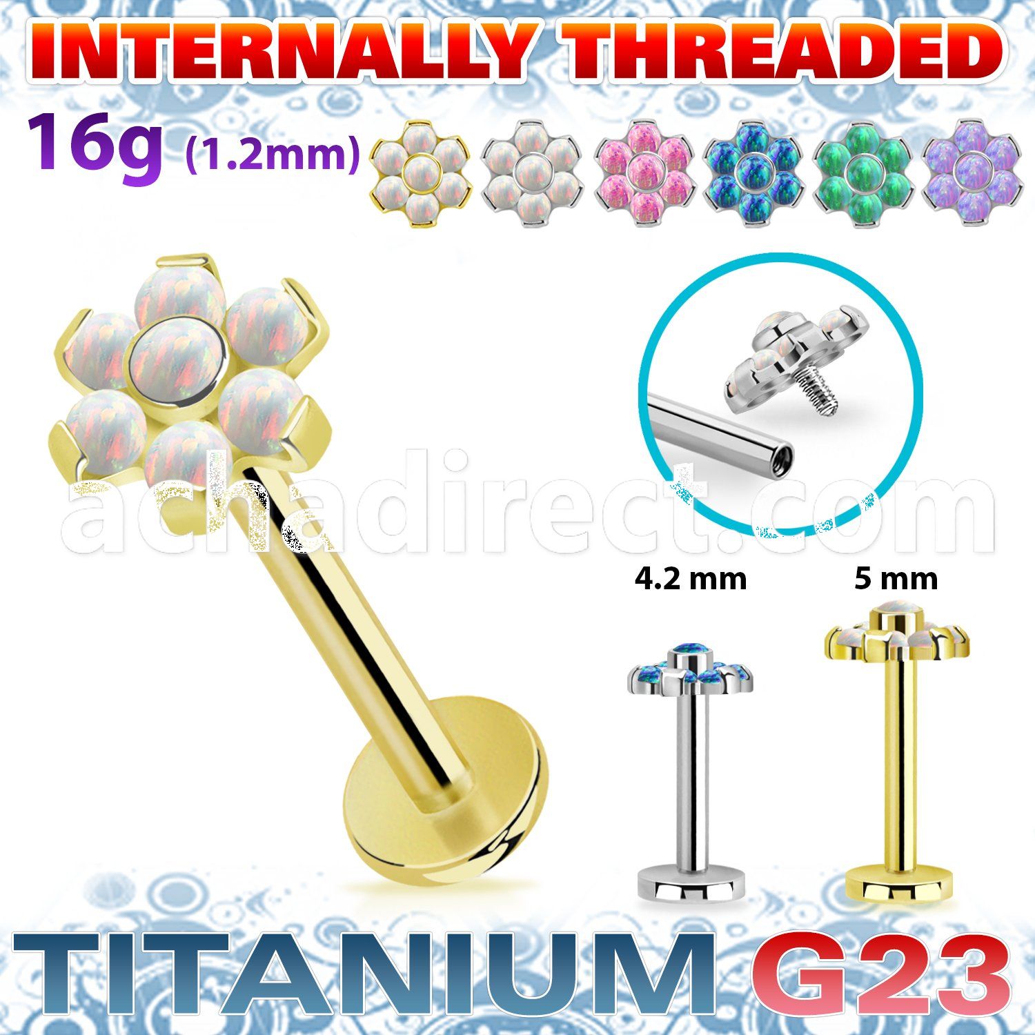 High Polish and Gold PVD Titanium Labret Flower Design Top