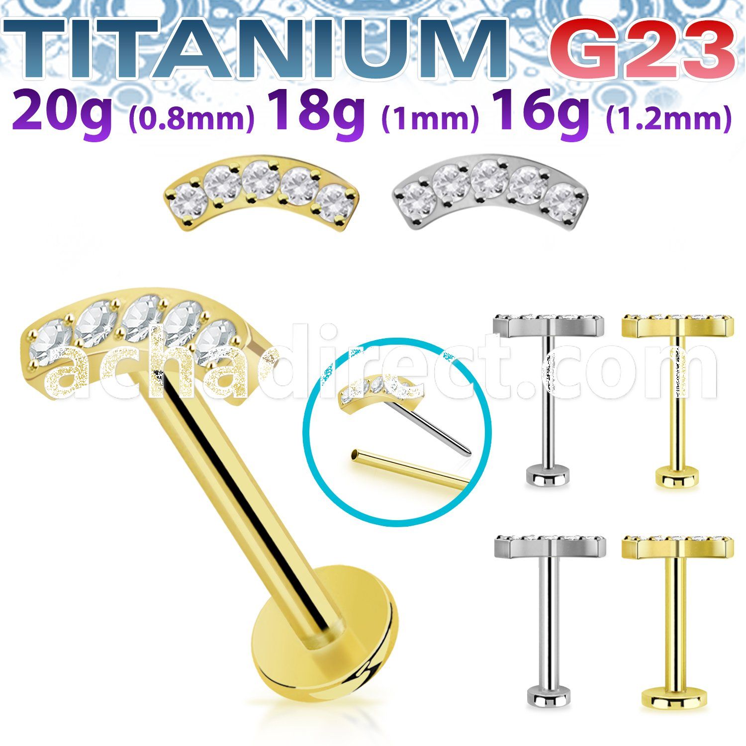 Gauge 1mm - 2.5mm Base - Gold - Clear 18g - 2.5mm Base - Gold - Clear ($6.04)