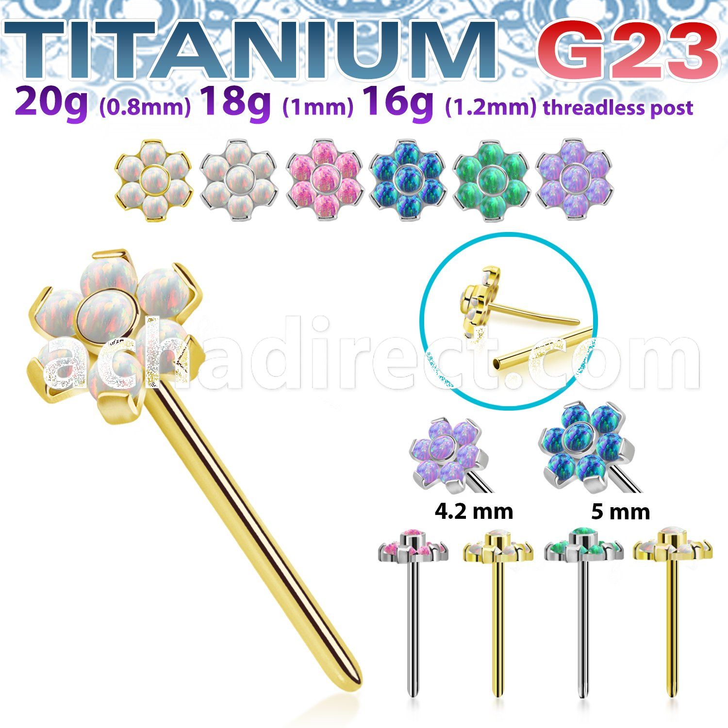 High Polish and PVD Titanium Push Pin Flower Top with Post