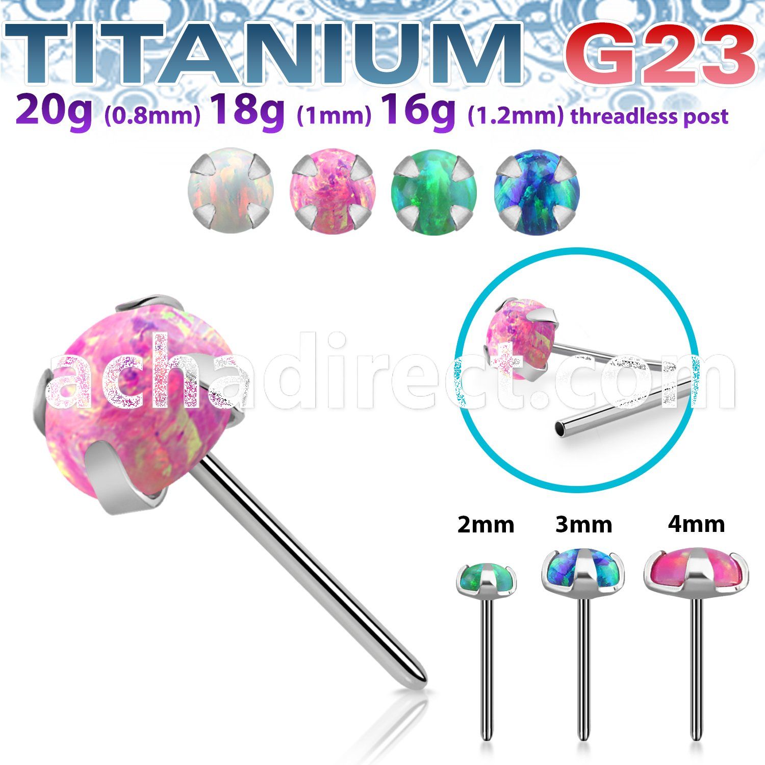 High Polished Titanium Prong-set Push Pin with Opal and Post