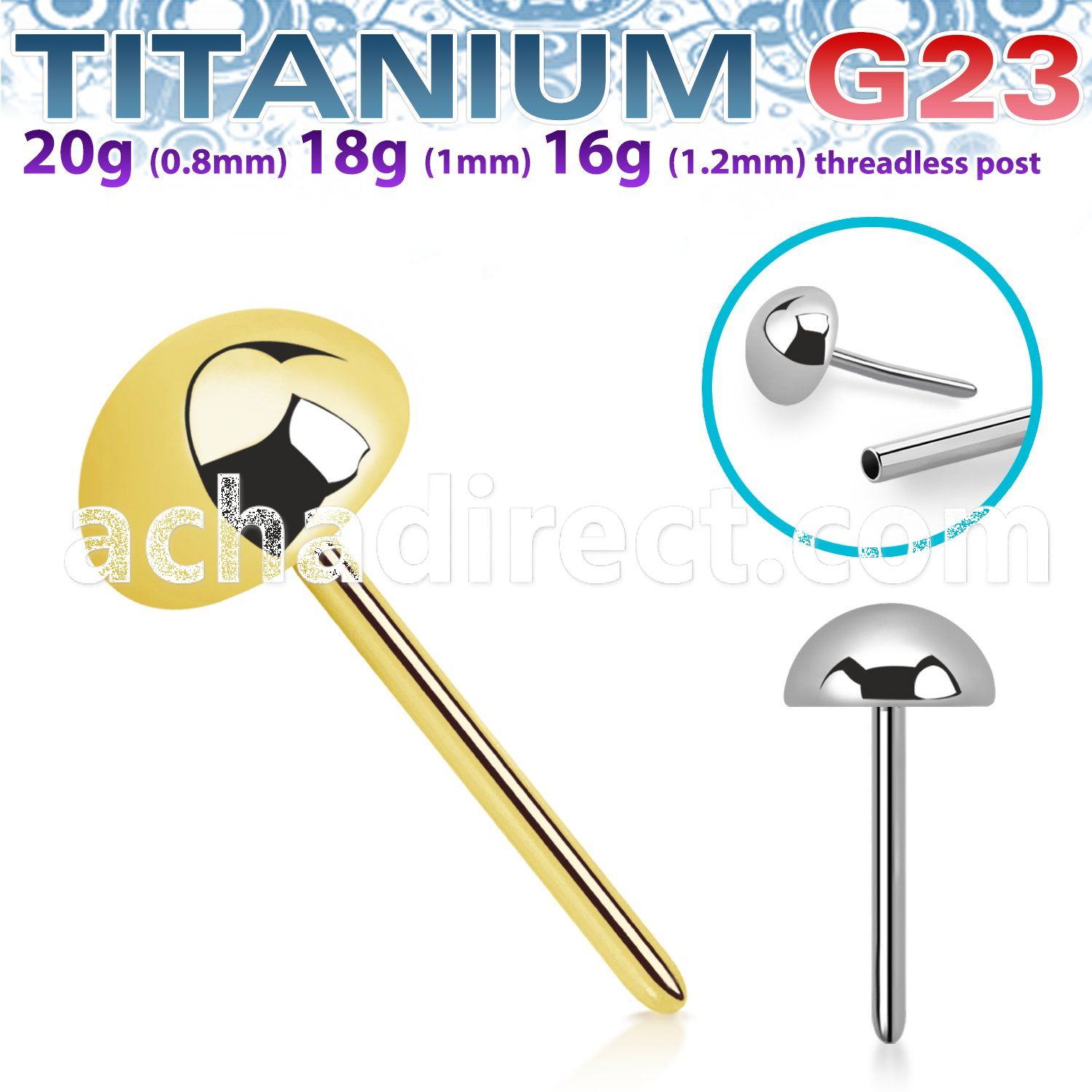 Titanium Threadless Push Pin Top Half Ball