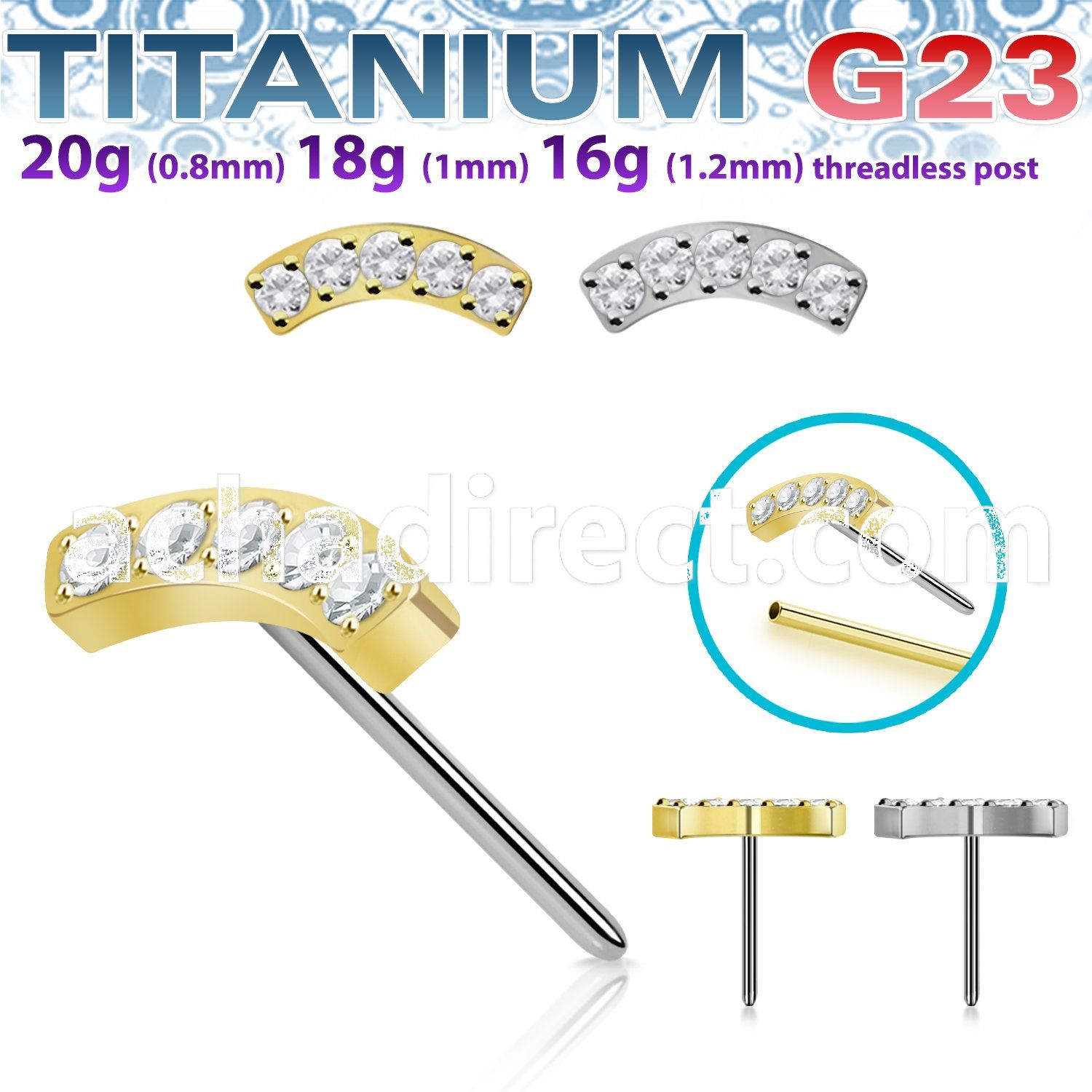 High Polish and PVD Plated Titanium Push Pin Top with Post