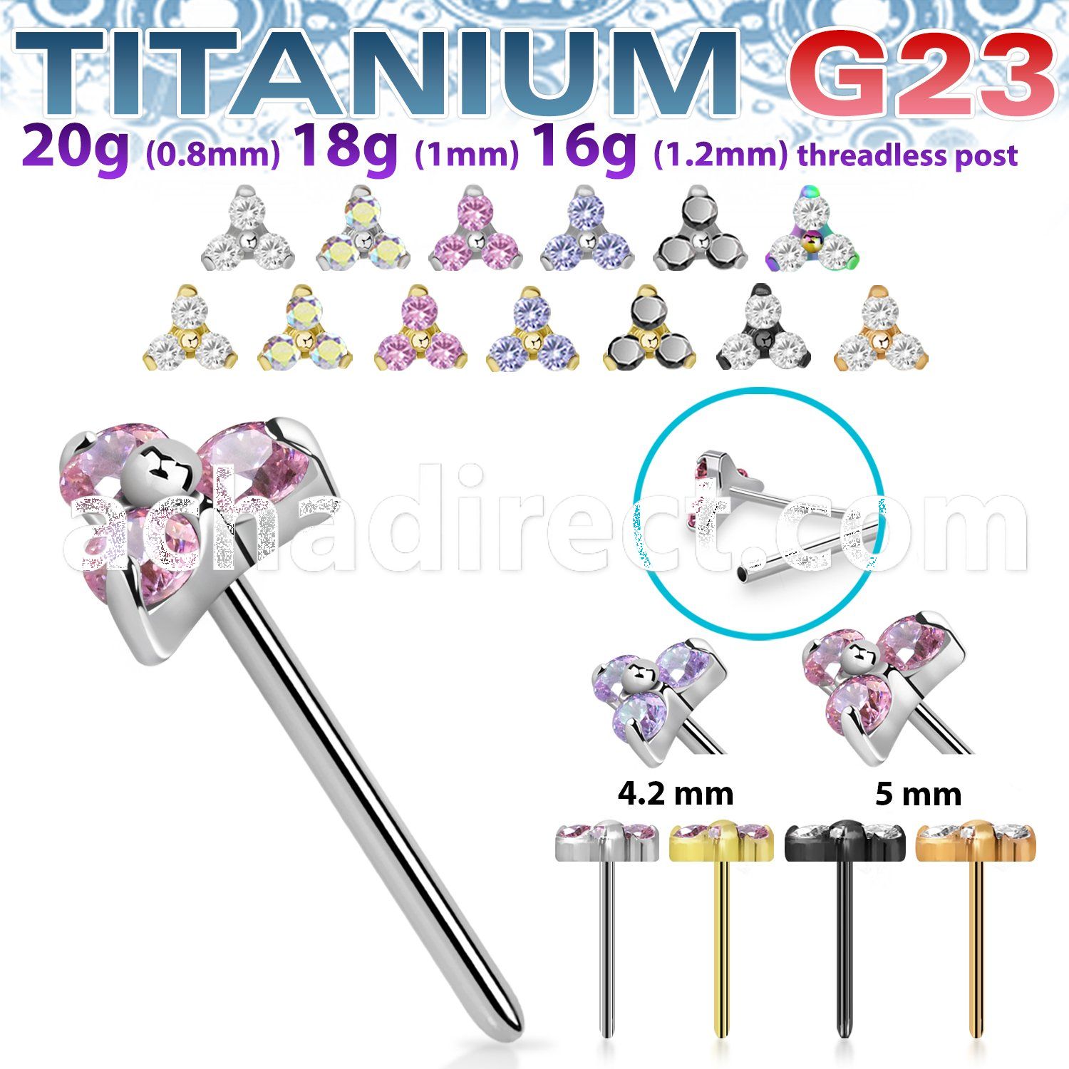 High Polish and PVD Titanium Push Pin Trinity Top with Post