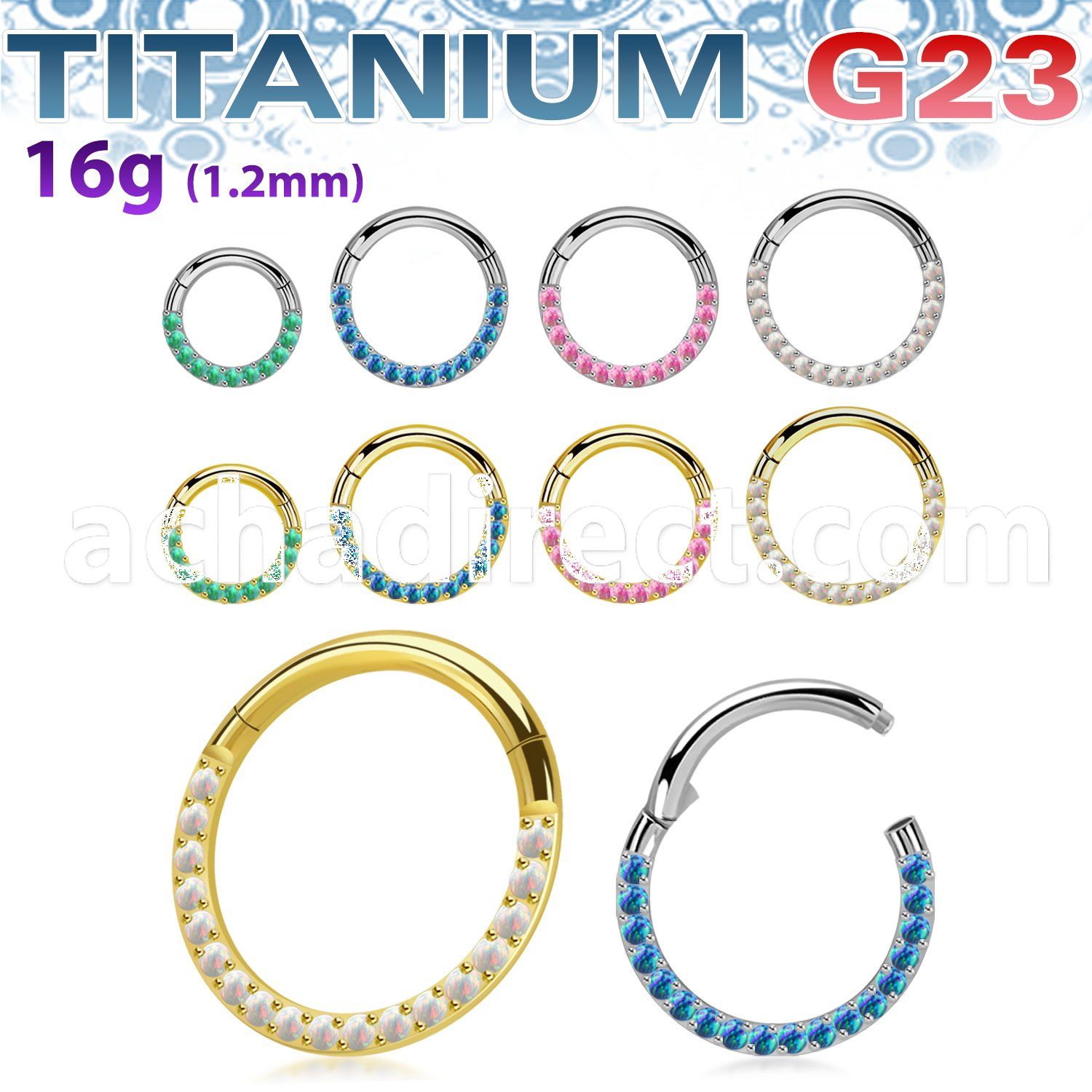 High Polish and PVD Titanium Hinged Segment Ring with Opals