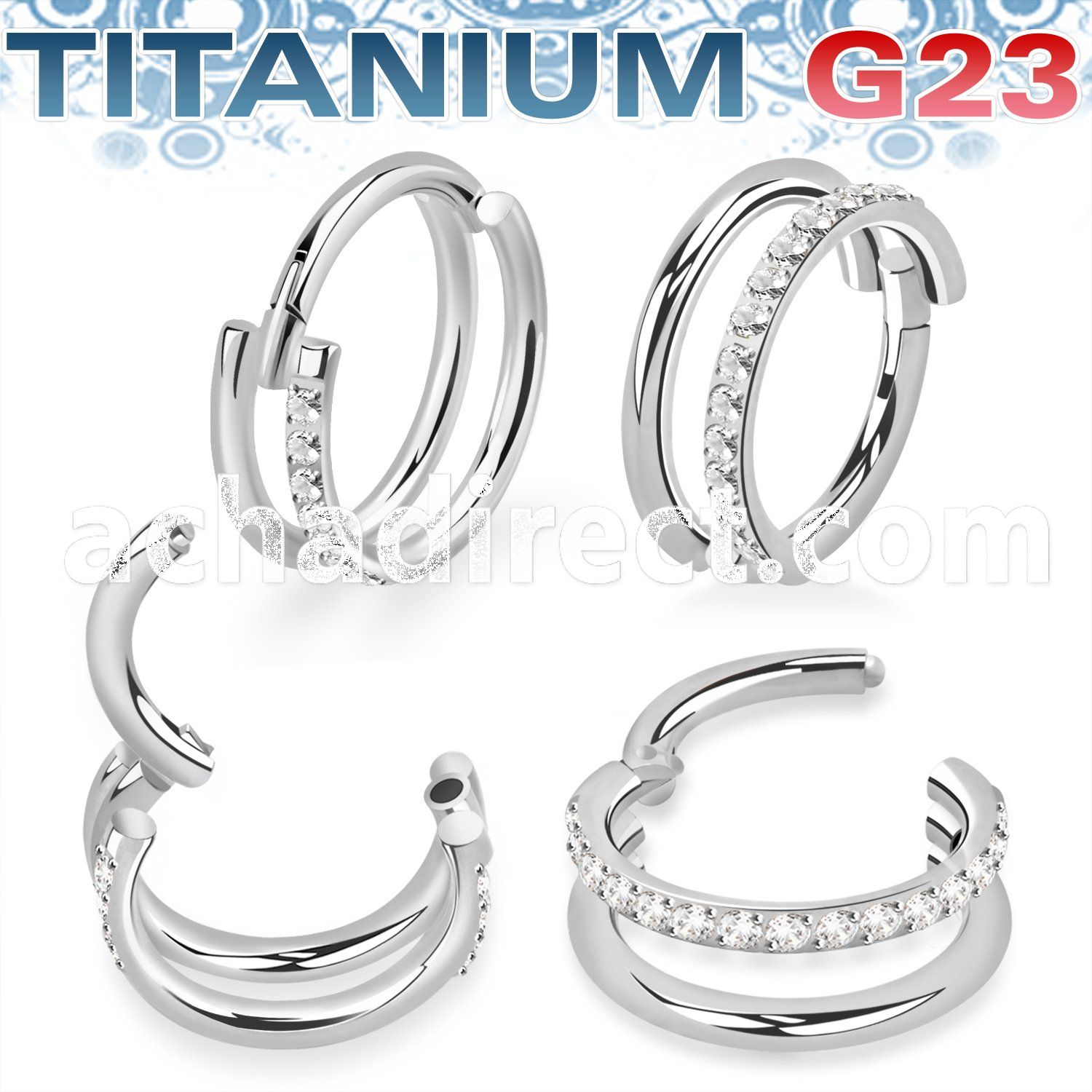 High Polished Titanium Hinged Segment Double Rings with CZ