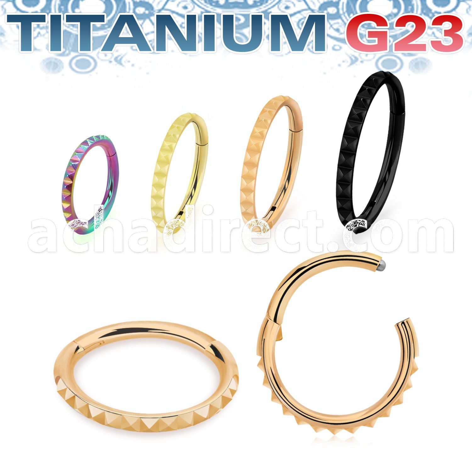 PVD Plated Titanium Hinged Segment Ring with Pyramid Pattern