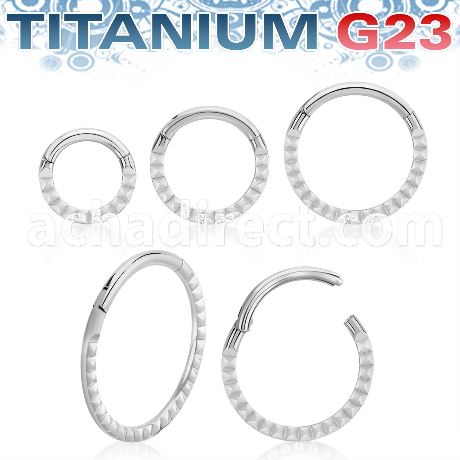 High Polished Titanium Hinged Segment Ring Pyramid Pattern