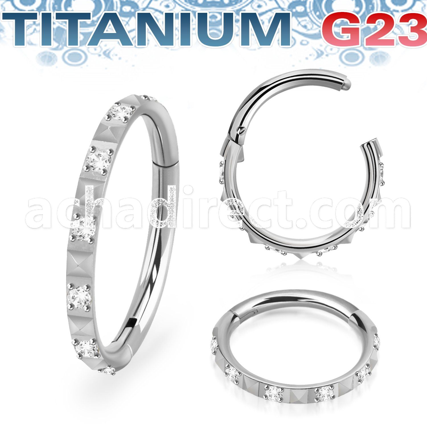 High Polished Titanium Hinged Segment Ring with CZ Stones