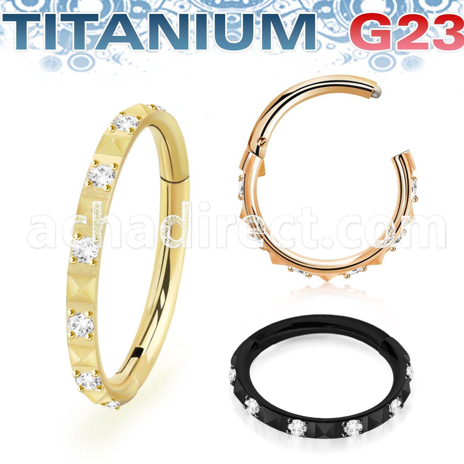 PVD Plated Titanium Hinged Segment Ring with CZ Stones
