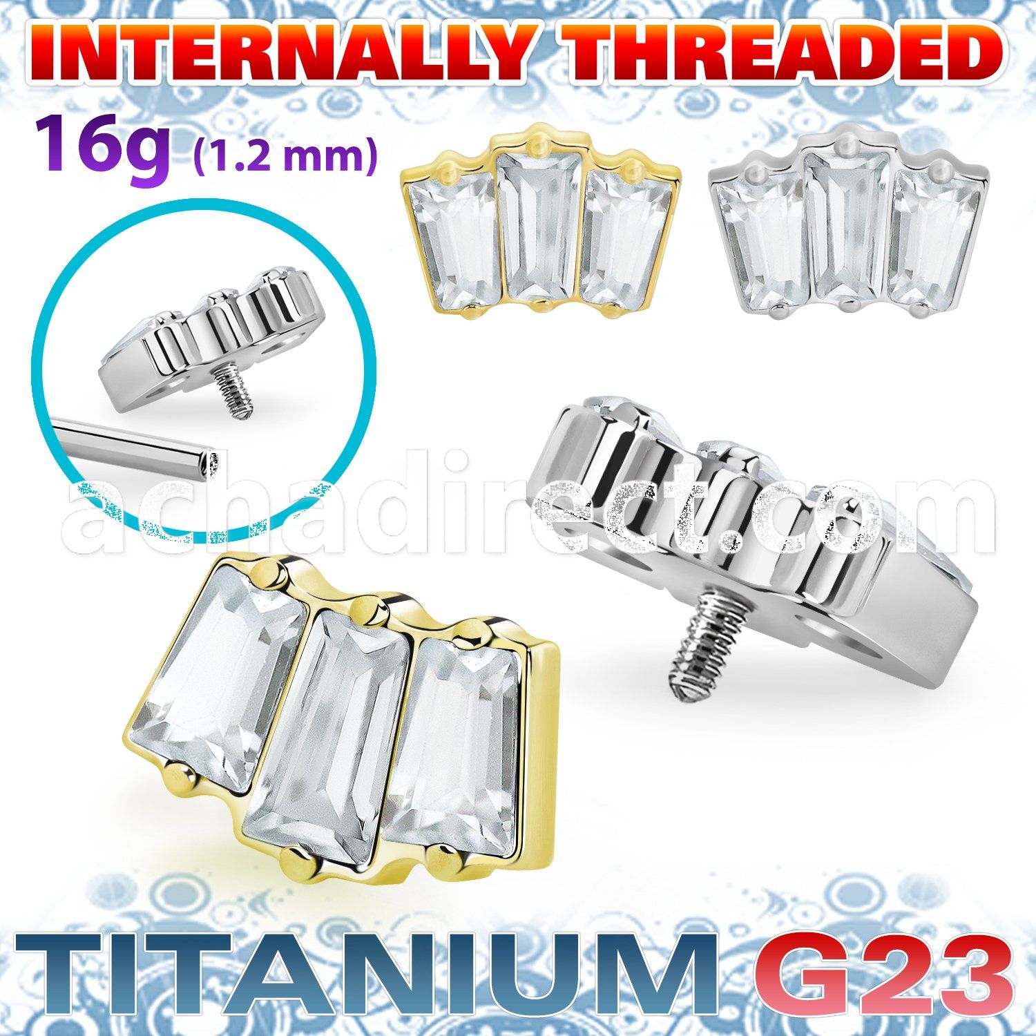 Titanium Top with Three Prong Set Baguette Shape CZ Stones