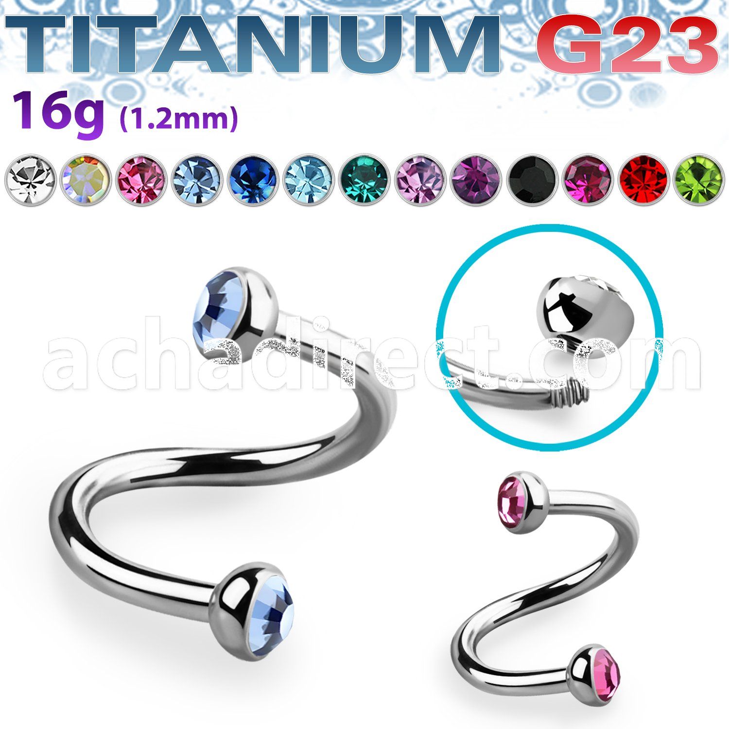 9. spet2c anodized steel eyebrow spiral w 3mm jewel balls