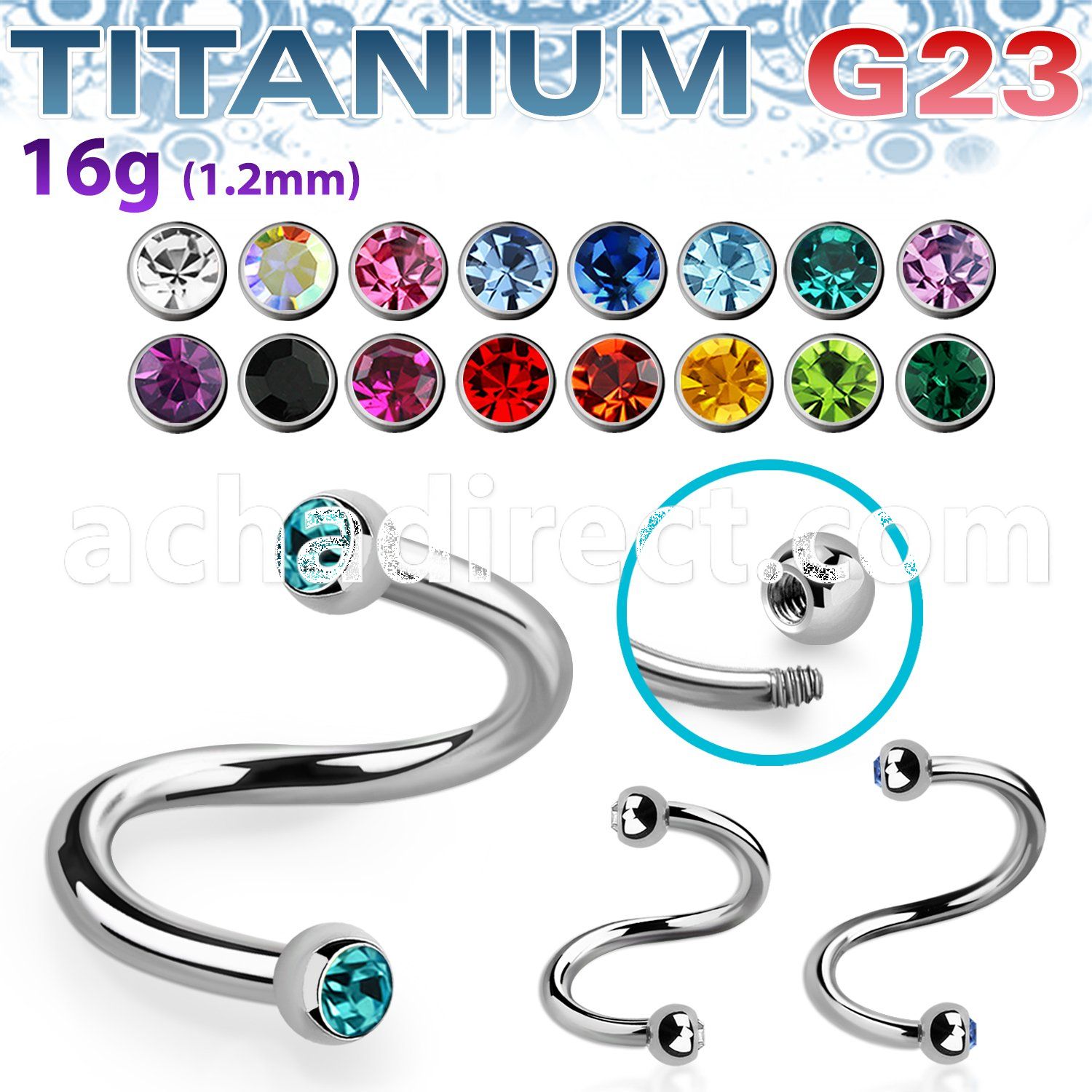 1. spet2c anodized steel eyebrow spiral w 3mm jewel balls