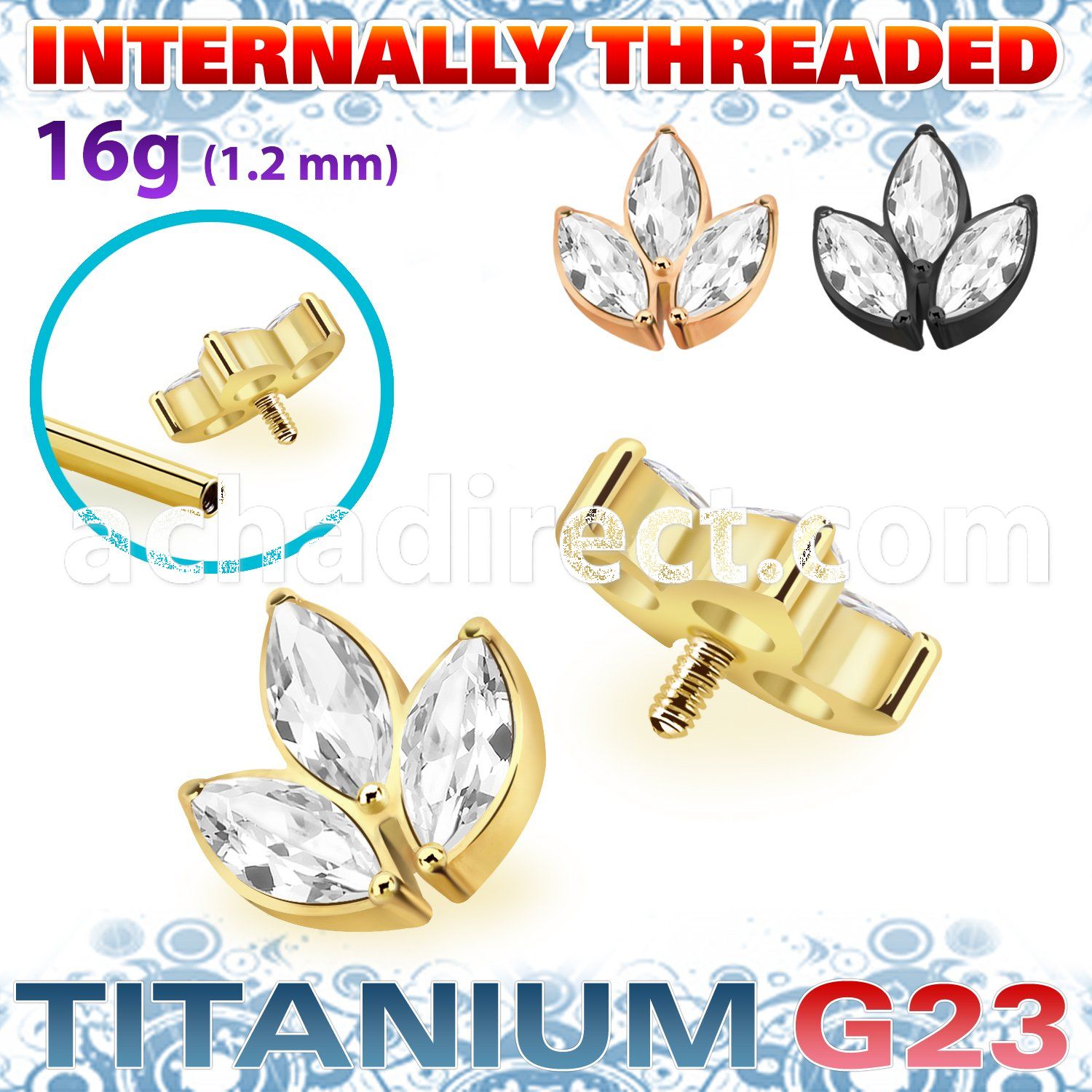 3. ushz7in titanium g23 top part post three round color cz
