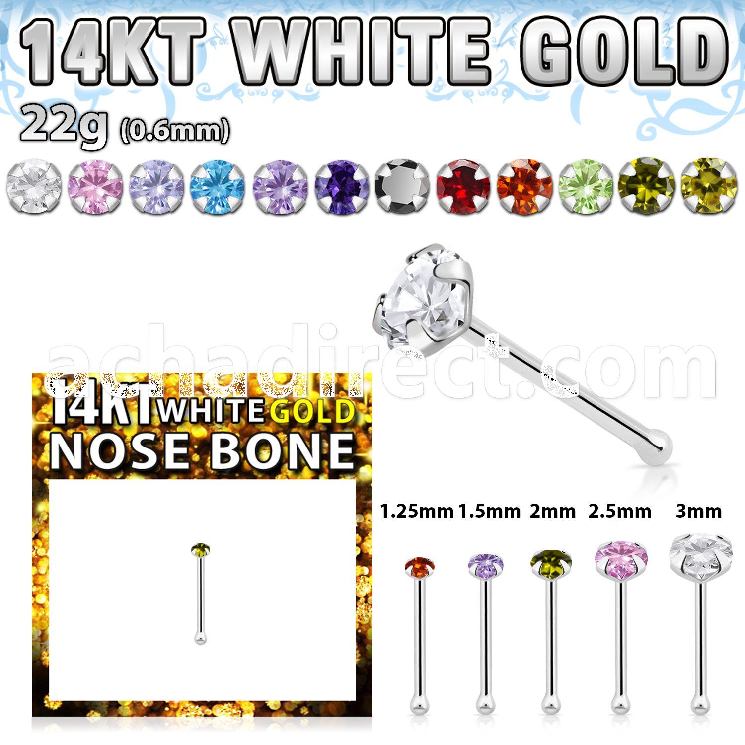 8. wbzsm1 14kt white gold nose bone w a 1.5mm round cz stone