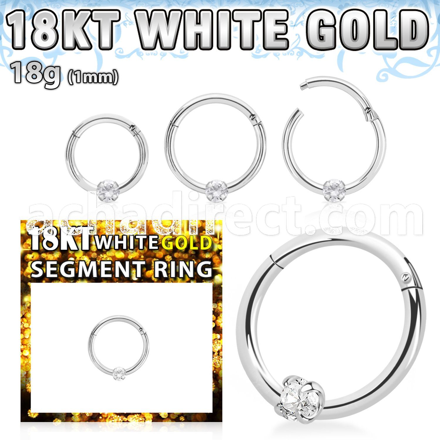 18k White Gold Hinged Segment Ring with Prong-set CZ Stone