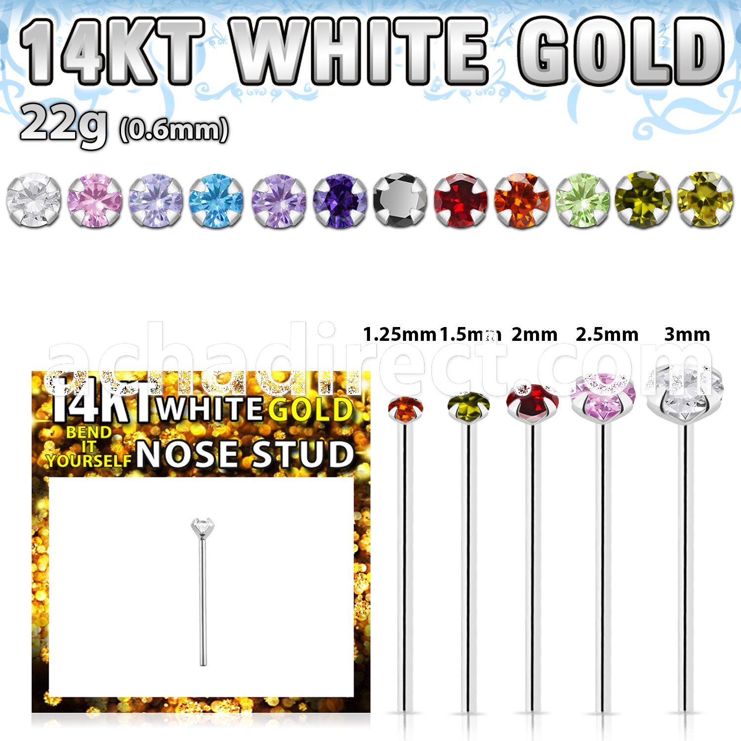 14k White Gold "Bend it yourself" Nose Stud with 1.25mm to 3mm Prong-set Round CZ Stone