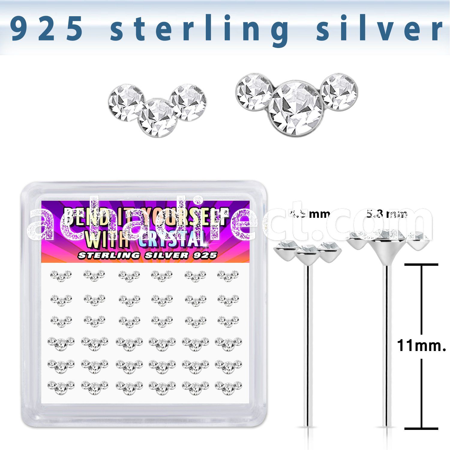 Silver "Bend it yourself" Nose Studs - Crystals, Display Box