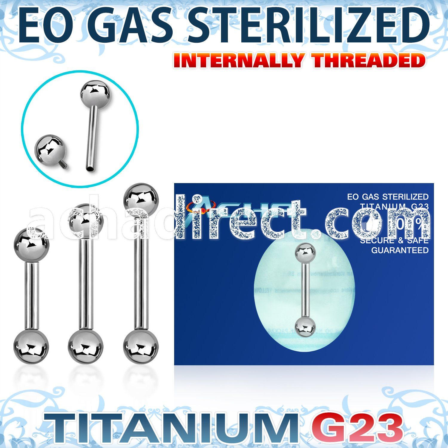 EO Gas Sterilized Titanium Internally Threaded Barbell