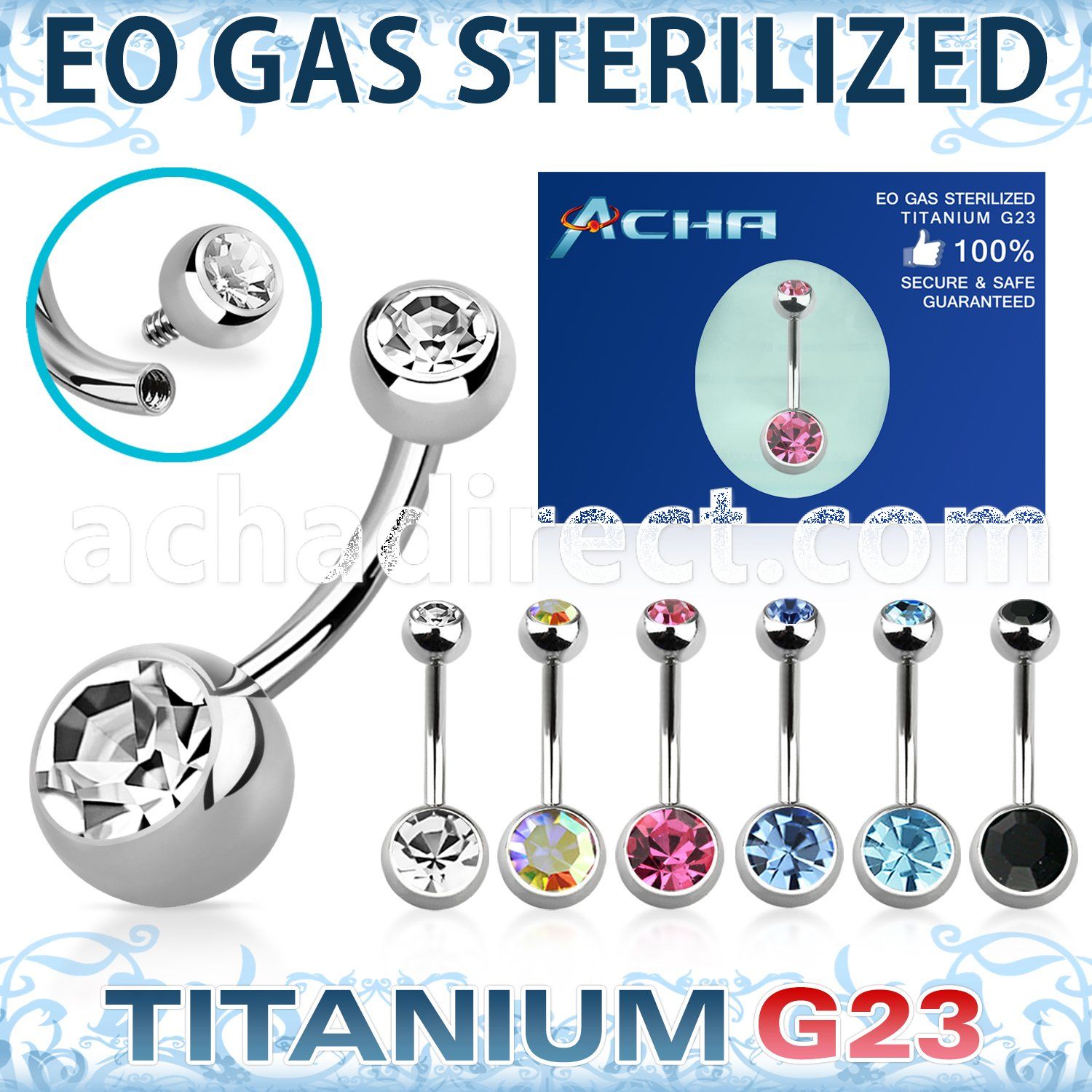 EO Gas Sterilized Titanium G23 Internally Threaded Belly Banana Bezel Set