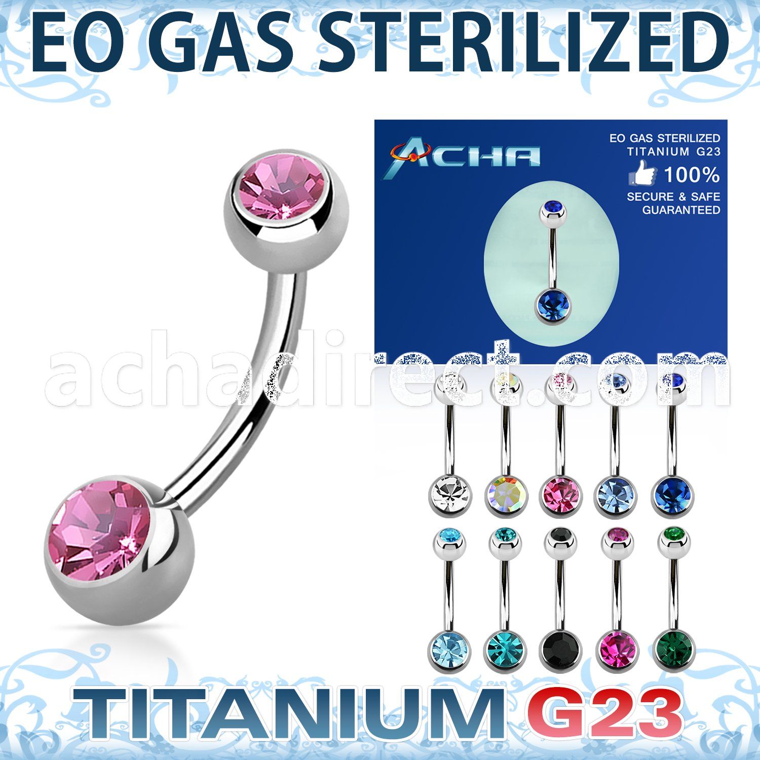 EO Gas Sterilized Titanium Belly Banana with 5mm and 6mm Jewel Balls