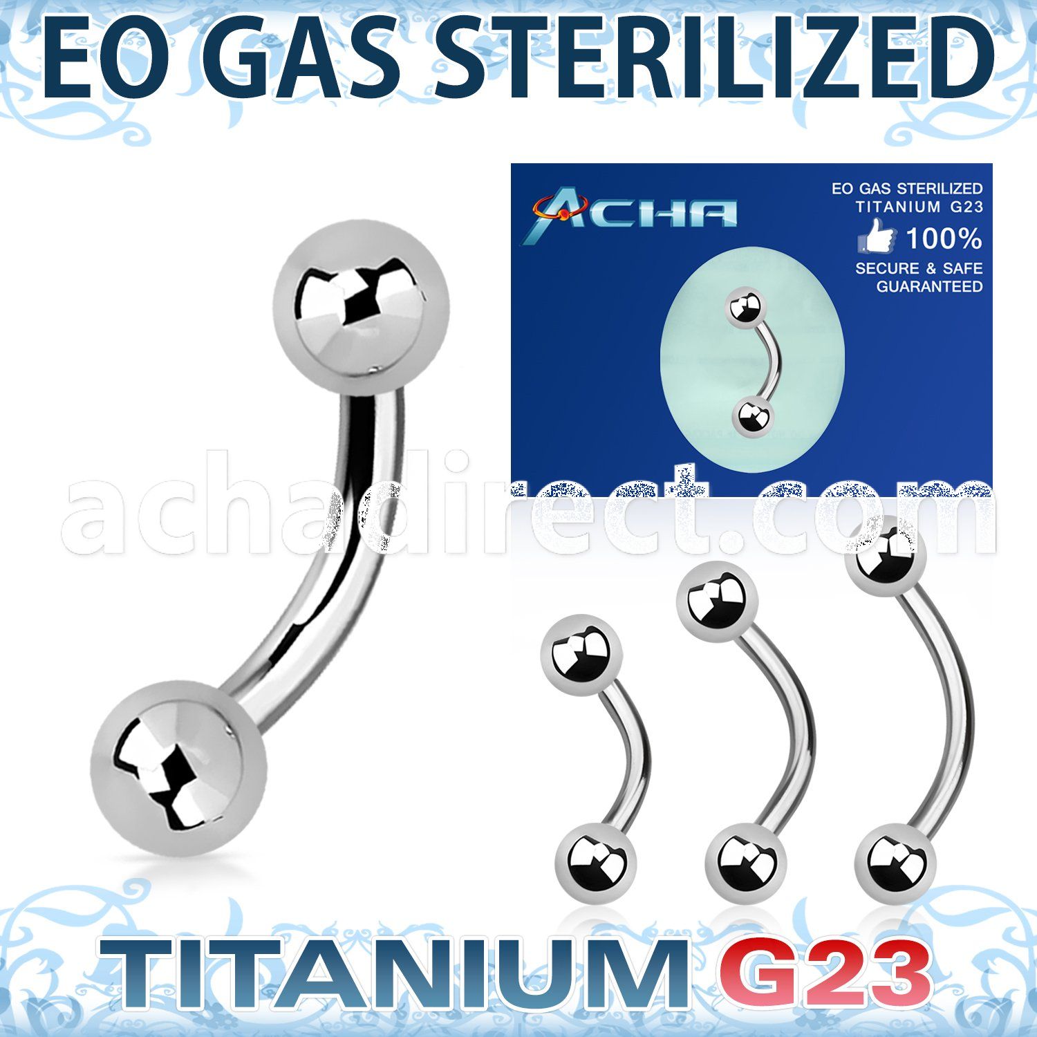 EO gas Sterilized Titanium Belly Banana with Two 4mm Plain Balls